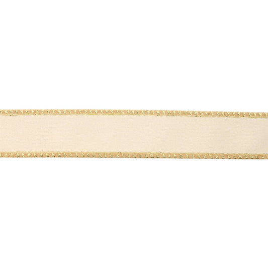 1" Reversible Classic Velvet Wired Ribbon | Ivory/Gold | 10 Yard Roll
