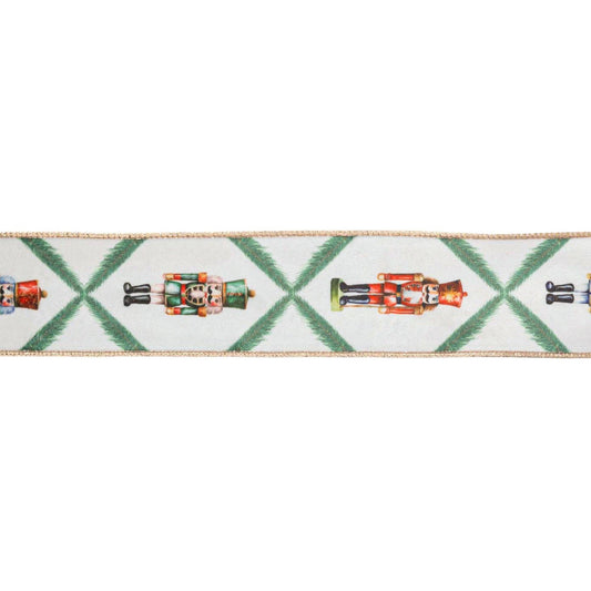 Reversible Velvet Nutcracker & Pine Wired Ribbon 10yd