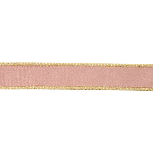 1" Reversible Classic Velvet Wired Ribbon | Pink/Gold | 10 Yard Roll