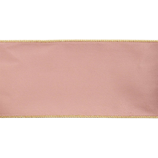 4" Reversible Classic Velvet Wired Ribbon | Pink/Gold | 10 Yard Roll