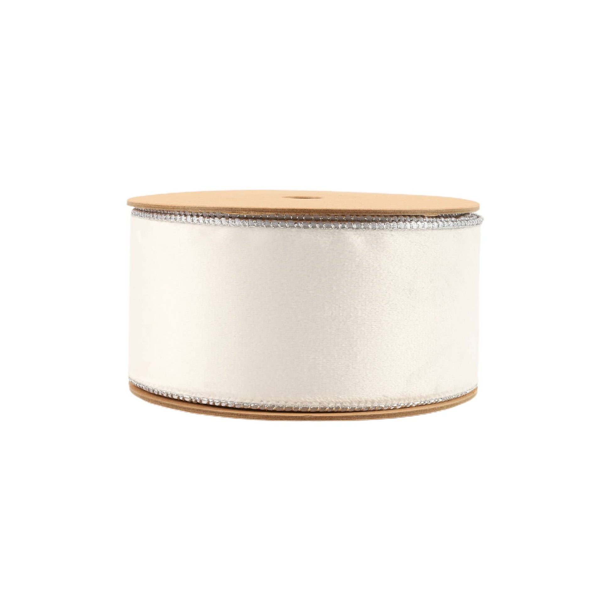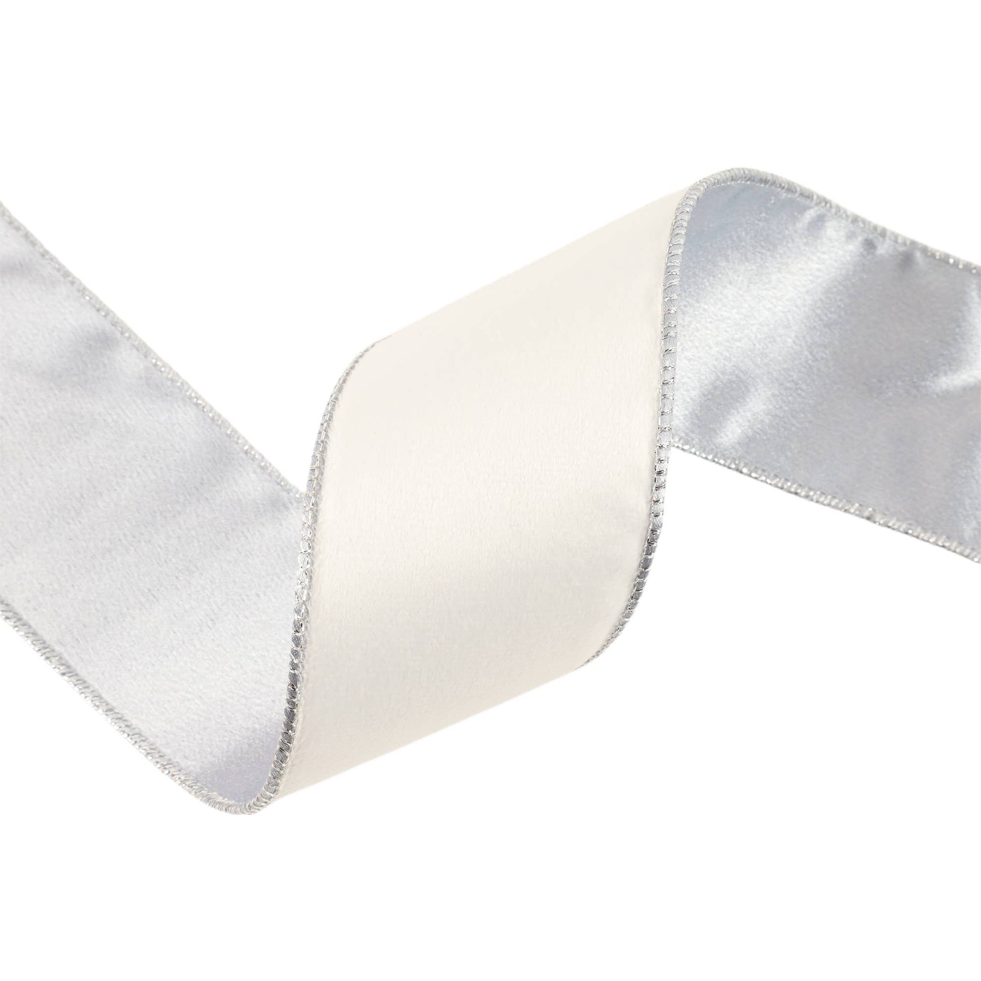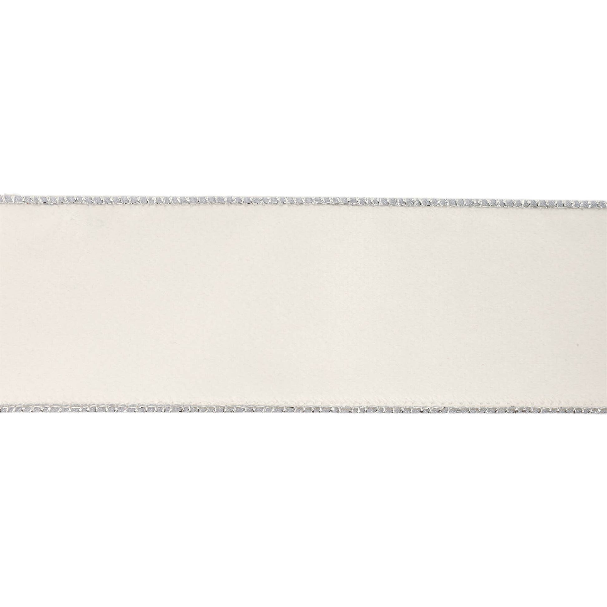 2 1/2" Reversible Classic Velvet Wired Ribbon | White/Silver | 10 Yard Roll.
