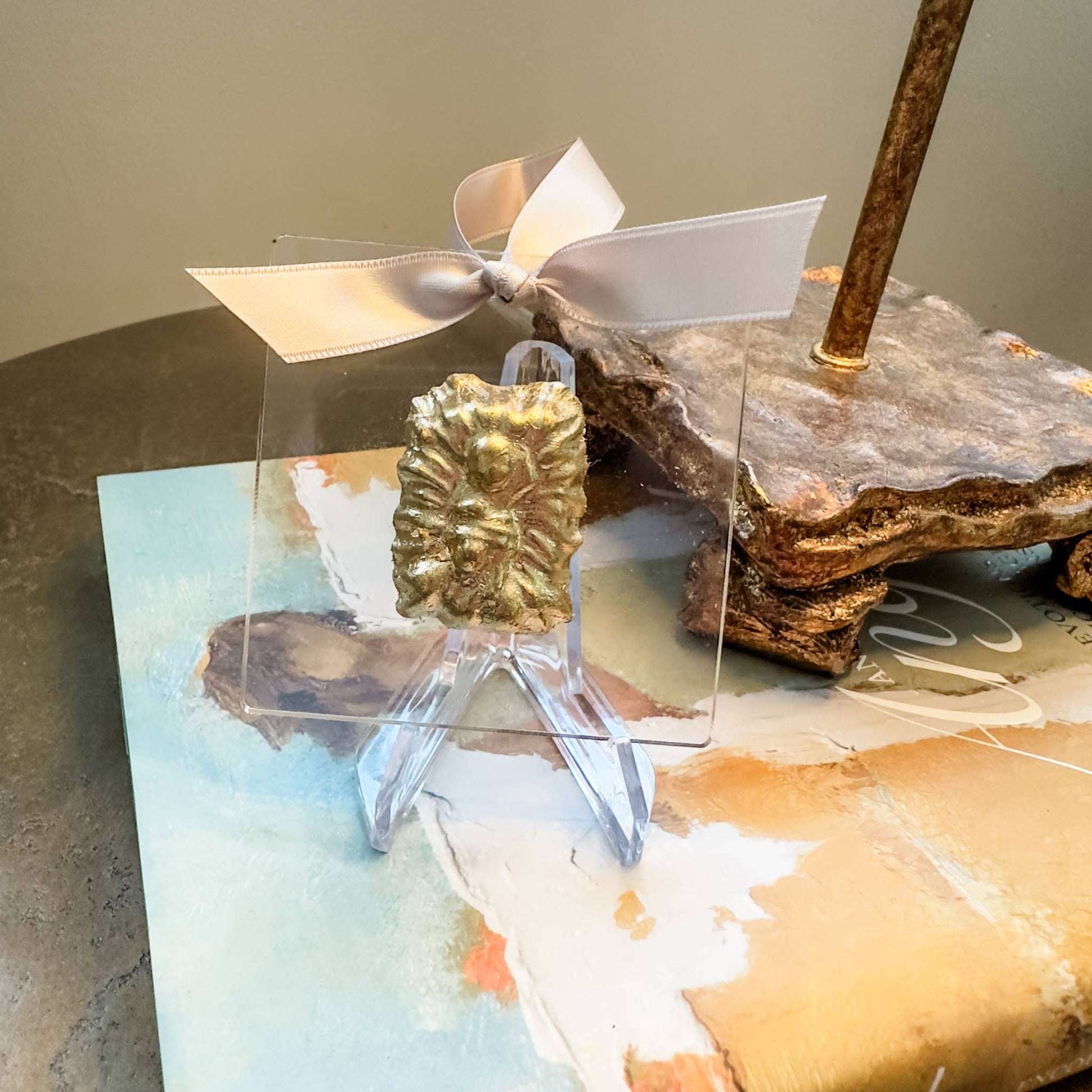 Gold Jesus in Manger on Acrylic Ornament